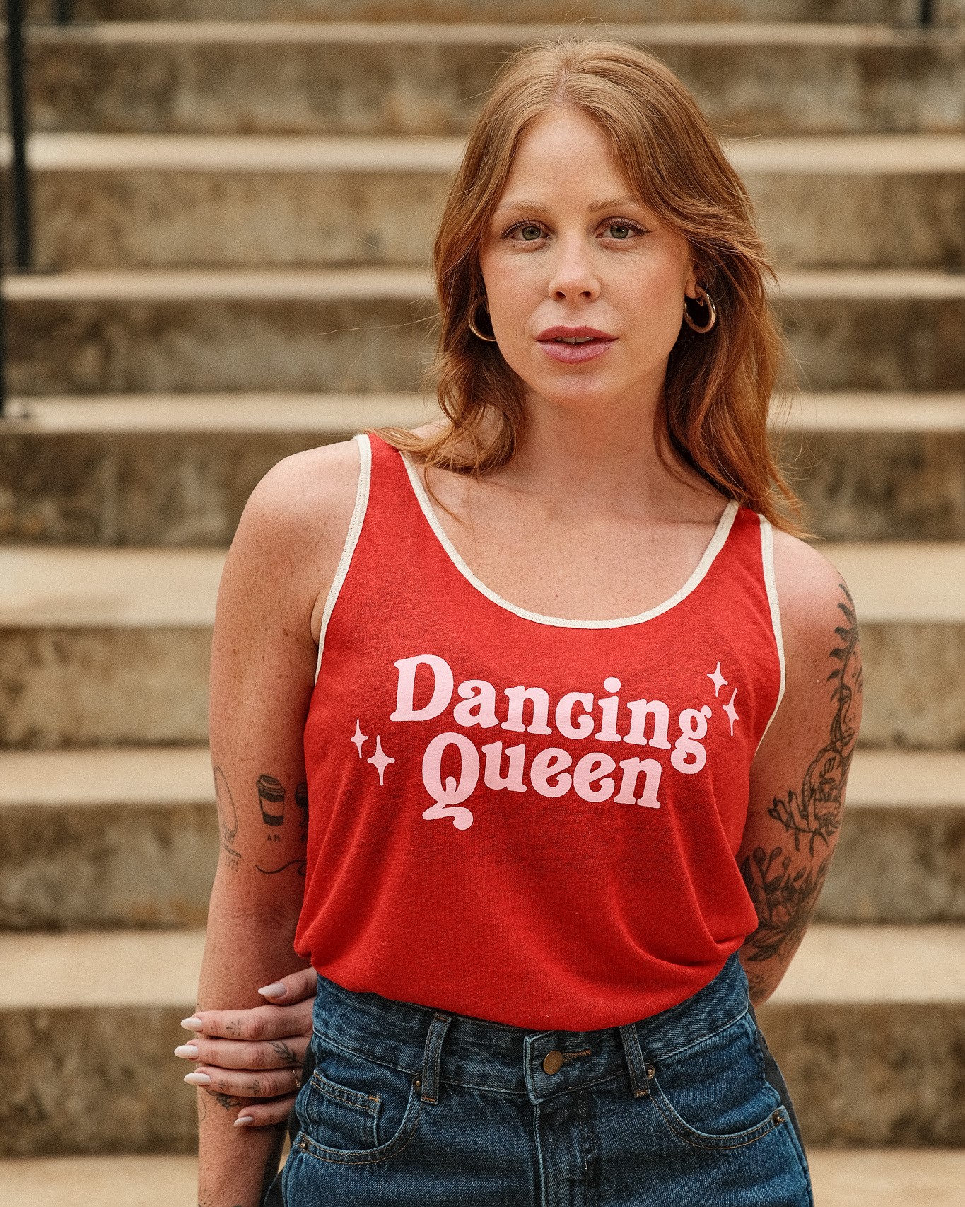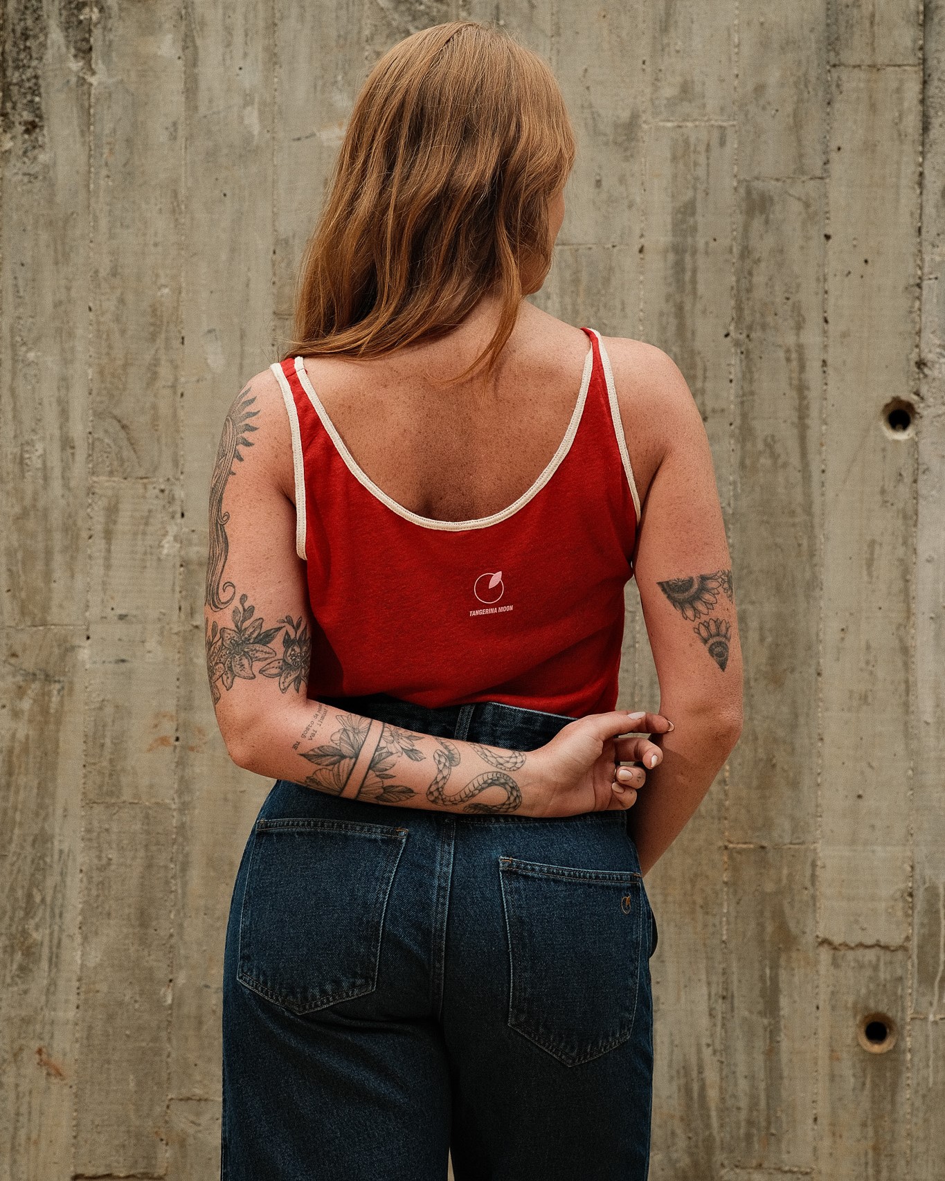 Regata em malha de linho com estampa e modelagem soltinha.